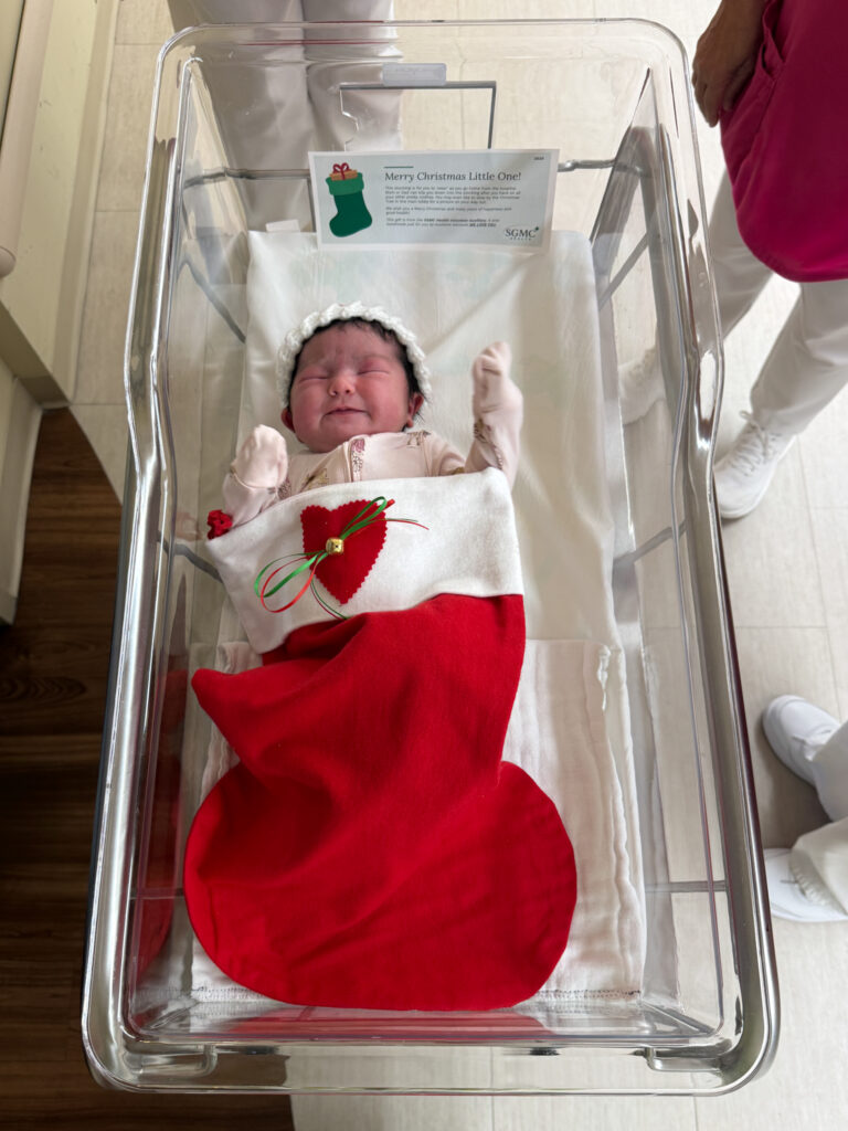 SGMC Health is spreading holiday cheer to its tiniest patients this Christmas week with a beloved tradition that has warmed hearts for decades. Every newborn delivered during the festive season will be welcomed with a handmade stocking and a crocheted Santa hat, lovingly crafted by members of the SGMC Health Volunteer Auxiliary.